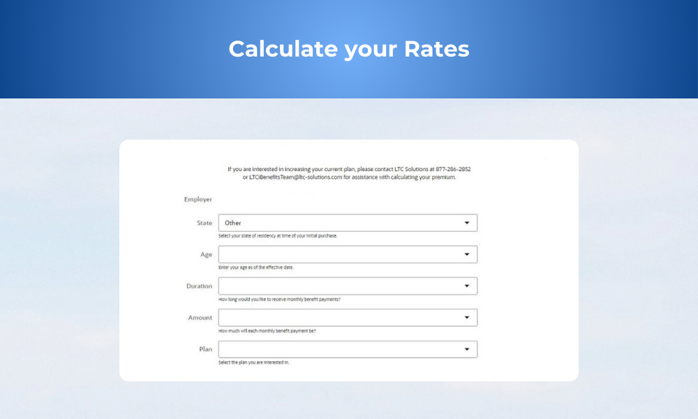 Licensed long term care specialists are available to assist you in understanding the plan and rates.