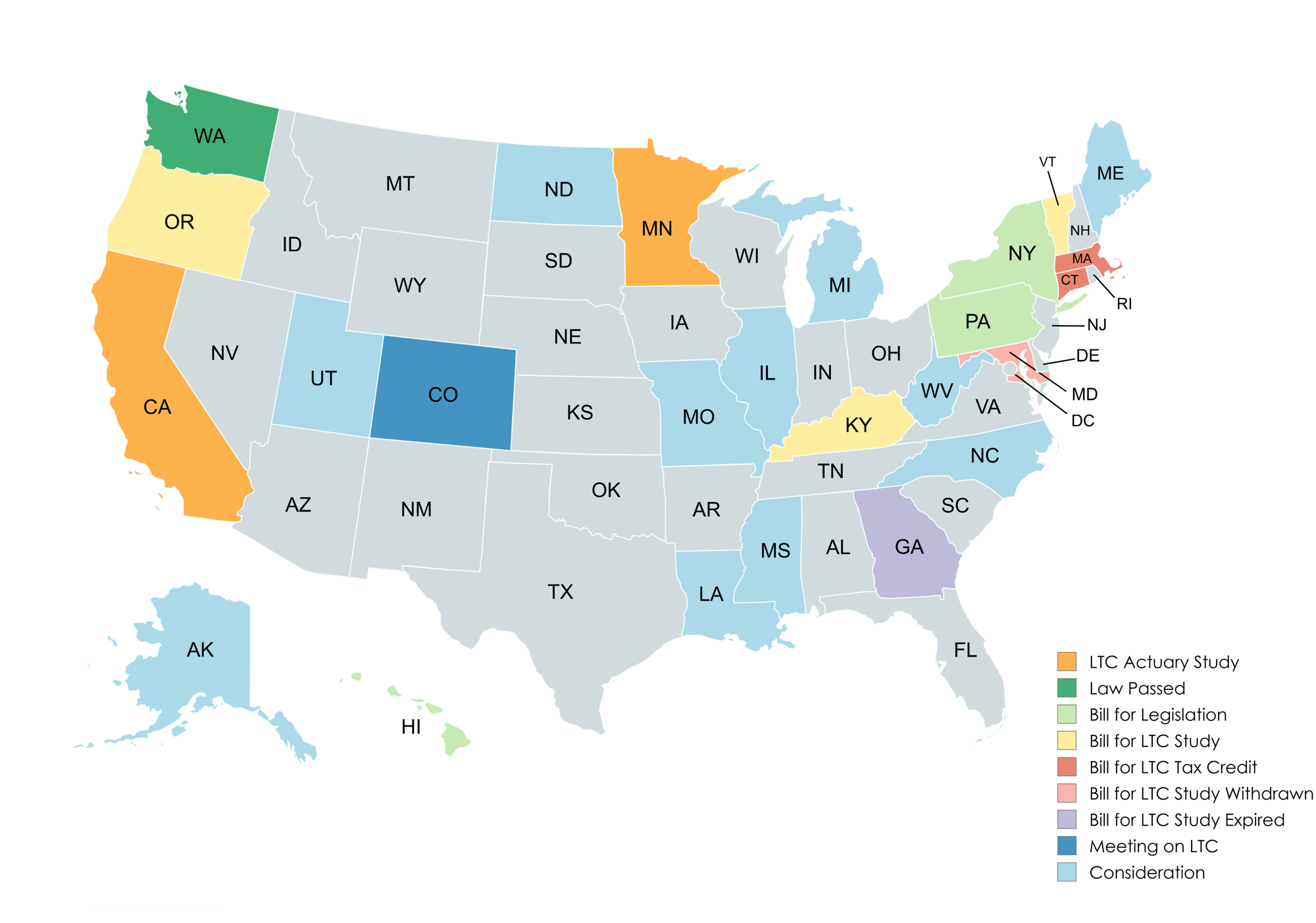 In 2019 the Washington state legislature established the Washington Cares Fund, the nation’s first publicly funded long-term care benefit for eligible workers, to address the future LTC crisis posed by an aging population. This sparked a national conversation about the need for long-term care planning as state Medicaid systems struggle to cover the 70% of Americans that will need LTC in their lifetimes, only 10% of whom have insurance that will pay for it. Many other states have followed suit and are in various stages of evaluating public LTC programs of their own. Depending on how each state designs their plans, qualifying LTC insurance policies may allow individuals to opt out of the payroll tax.
